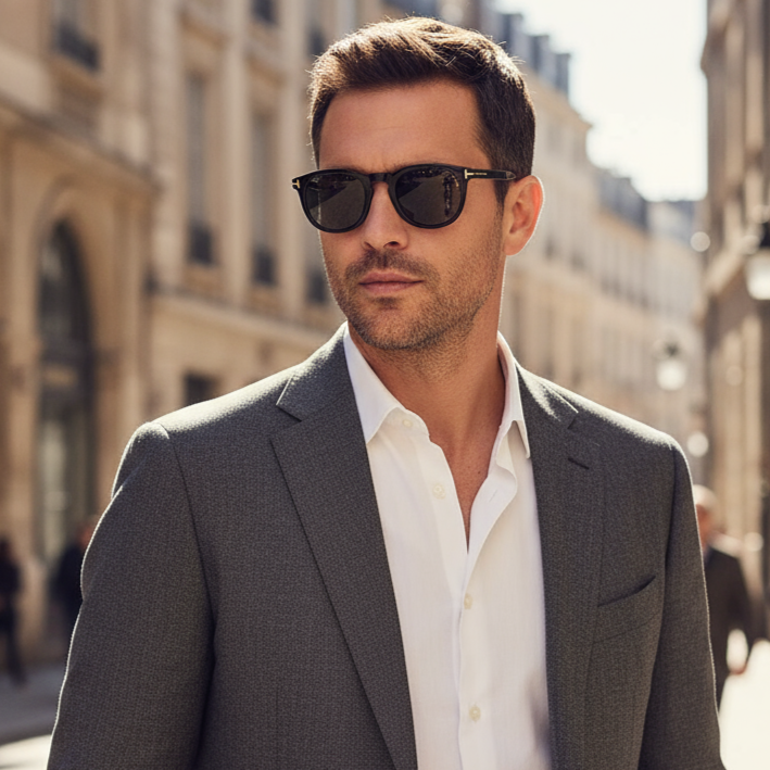 نظارة بتجمع بين الفخامة والراحة والتفاصيل اللي تهمك:• إطار كامل من أسيتات فاخر مدعوم بمعدن من الداخل ليزيد من قوة الاطار• أذرع تعزز الثبات وتكمل الشياكة• اللون؟اسودلون العدسات:رمادى• العدسات بلورايزد وبها عامل حماية من الاشعة فوق البنفسجية 400UVوالتفاصيل اللي بتفرق:• حرف T المعدني المميز من توم فورد في واجهة الإطار• اسم “TOM FORD” محفور من داخل الذراع بخط واضح